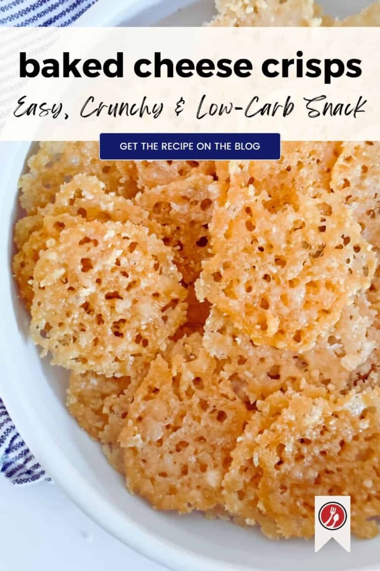 Snacks – Change potato chips or crackers. Dip – Pair with guacamole, salsa or French onion dip. Taco Shells – Make a larger mound, bake until it’s soft, then drape it onto a spoon to form. Cheese Bark – Spread the cheese in a thin layer, add seeds/spices, bake, then fall apart. Soup Topper – Perfect with tomato soup or chili. Salad Garnish – Perfect especially for Caesar salads.