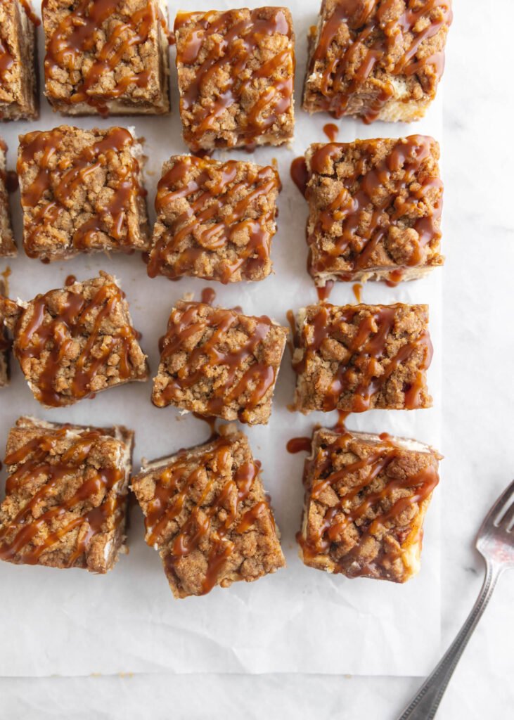 Caramel apple cheesecake crumble bar Written by Sophie | Broma Bakery Made with a buttery brown sugar crust, tangy cheesecake,…