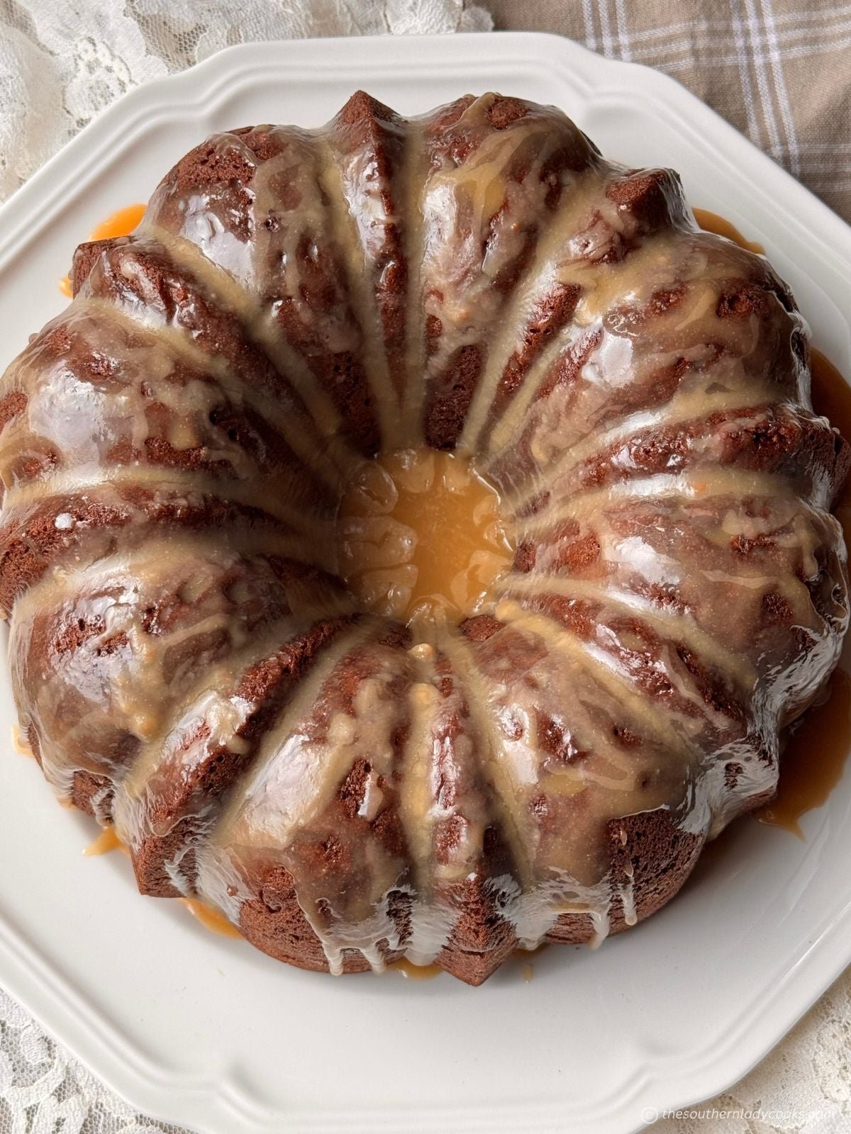 You don’t need to add frosting to this recipe, but I think it would be great. You can easily make it by just sprinkling it with powdered sugar. You could also make this cake in a 9 x 13 cake and pour the caramel frosting over the top of the cake, but I double the frosting recipe.