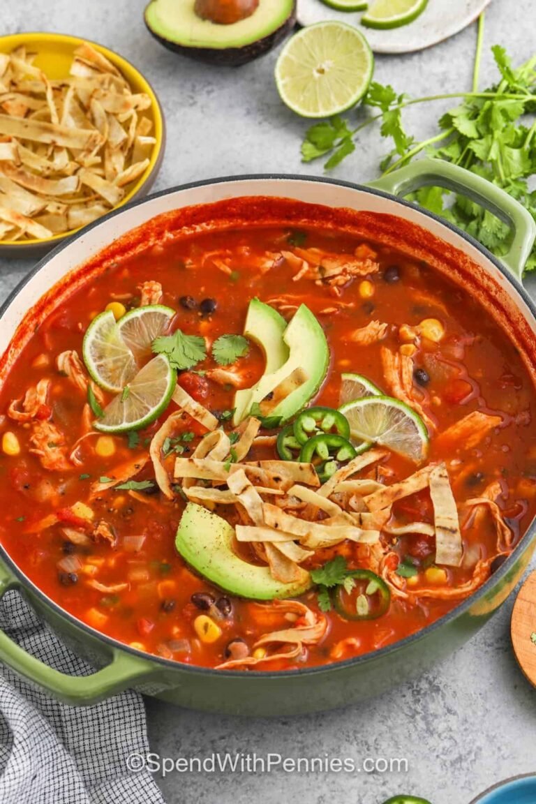 This Chicken Tortilla Soup is hearty and comforting with the perfect spicy kick.