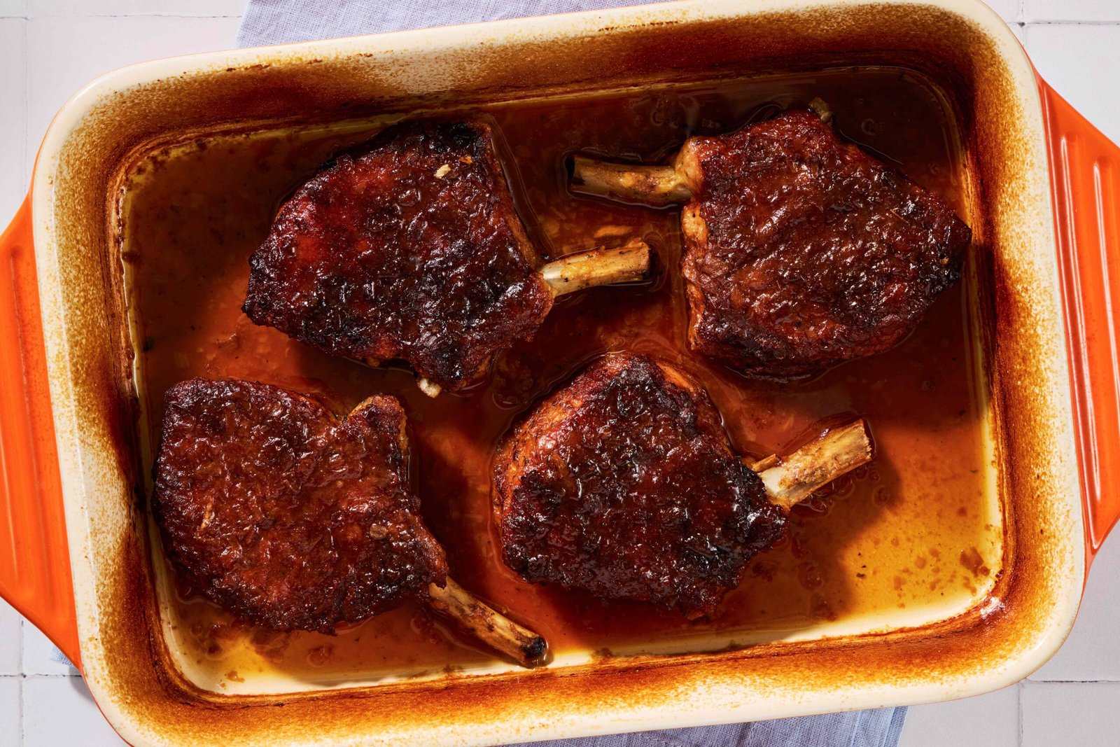 “This recipe is incredibly simple, but it’s more than just a combination of parts. To make it, thick-cut pork chops are coated with beaten egg and seasoned breadcrumbs, browned in a skillet, and placed in a baking dish. Sprinkle a packet of onion soup mix on top, add water to the dish, and slowly roast the chops for hours.” —Afton Cyrus, Senior Editor