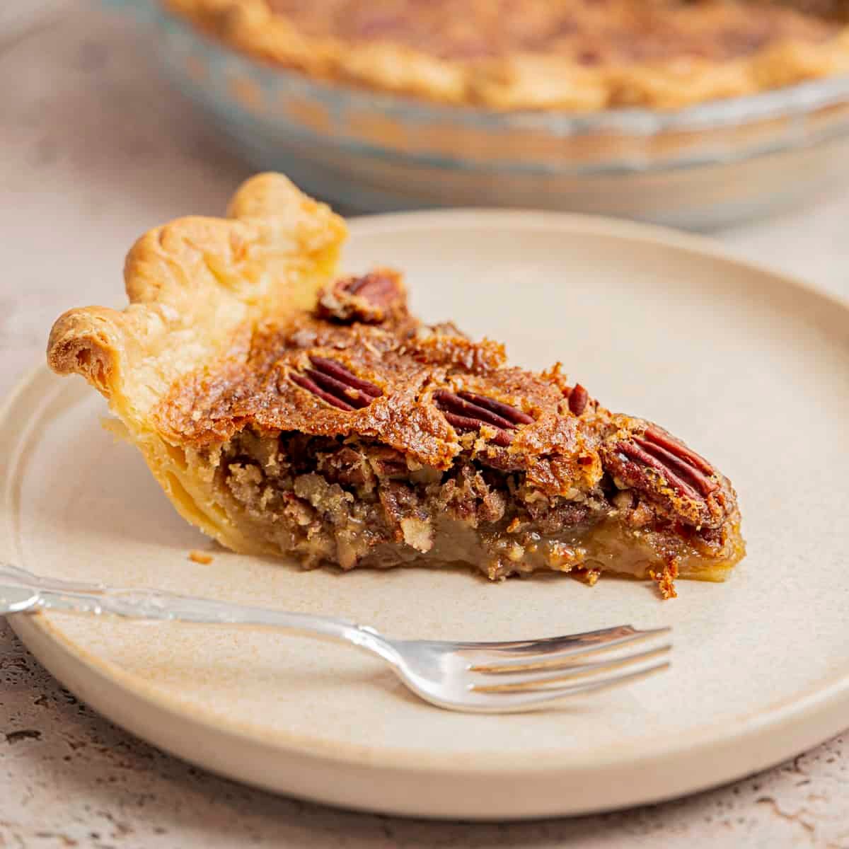Let the pie cool completely before serving, as the filling will harden. Once cooled, the center remains soft and gooey and slices neatly. Serve pie at room temperature. Leftover pecan pie can be stored, covered, in the refrigerator for up to 5 days. Bring to room temperature before serving so the filling becomes soft again.
