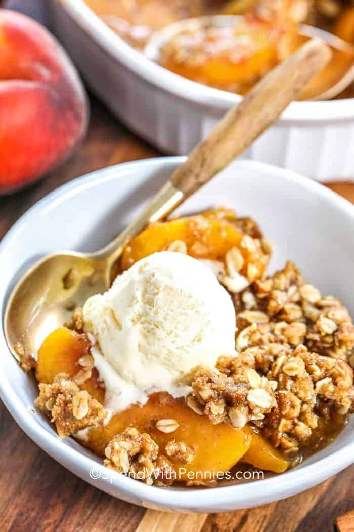 Cover the extra peach crumbs in the fridge for up to 3 days or store in the freezer for up to 4 months.