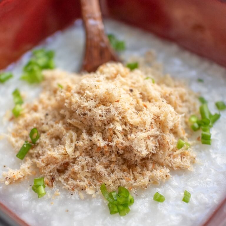 Poached Chicken: Trim excess fat from the chicken if necessary. Place the chicken in a pan and add enough water to cover. Bring it to a boil, then reduce to a gentle simmer and cook until just finished (about 8-10 minutes). Shredded and Season Chicken: Transfer the chicken into a bowl of stand mixture using either a paddle or a whisk. Add the fish sauce (2 tablespoons), chicken bouillon powder (1 teaspoon), sugar (2 teaspoons), and ground black pepper (1 teaspoon). Mix until the chicken is shredded and seasonings are evenly mixed. Instead, when the chicken is cool enough to handle, it can tear and create fuzz. No floss texture is required at this point. Dried Chicken: Transfer seasoned fine chicken into a wide, non-charred skillet or wok. Add the oil (2 tablespoons) and shallots (1/2 cup) and toast until the shallots are mostly cooked (about 1 minute). Cook over medium to low heat, stirring constantly to prevent burning. This step can take about 15 minutes. Continue stirring until the chicken is completely dry and lightly browned. Create floss: Return to the mixer and mix until you get a fluffy texture (about 5 minutes on medium speed). Taste salt if necessary (1/4 tsp 1/4 tsp). Enjoy as a snack, rice topping, aridge or sticky rice or filling for a bun mee.