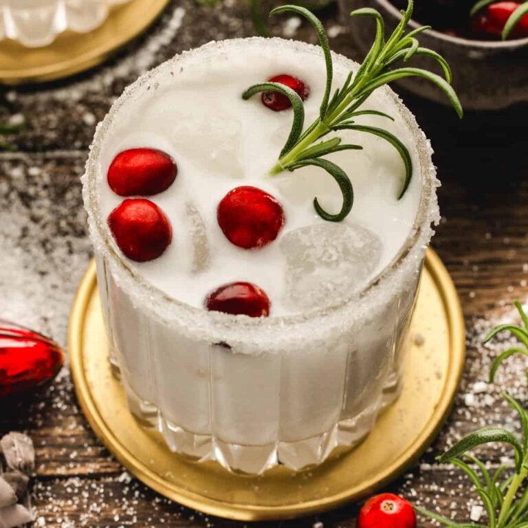 This White Christmas Margarita is creamy, festive, and ready in minutes. Made with tequila, coconut cream, and white cranberry juice, this holiday margarita is perfect for Christmas parties and winter entertaining.